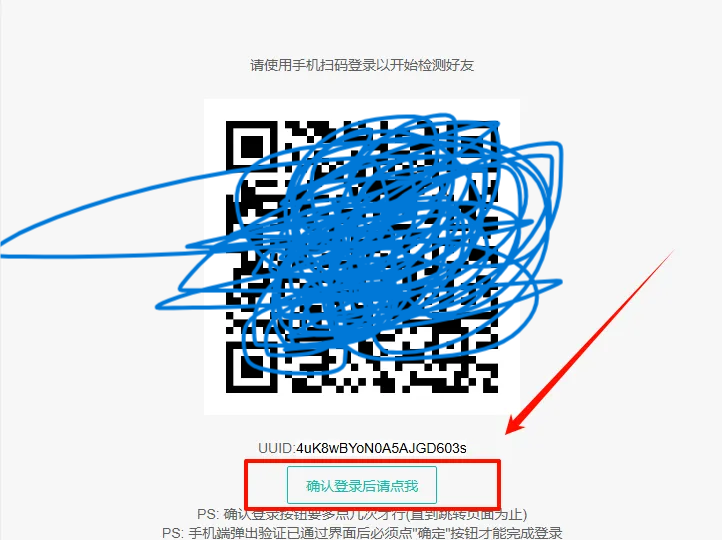 扫码登录后,建议多次点击“确认登录后请点我”按钮,以确保登录成功。