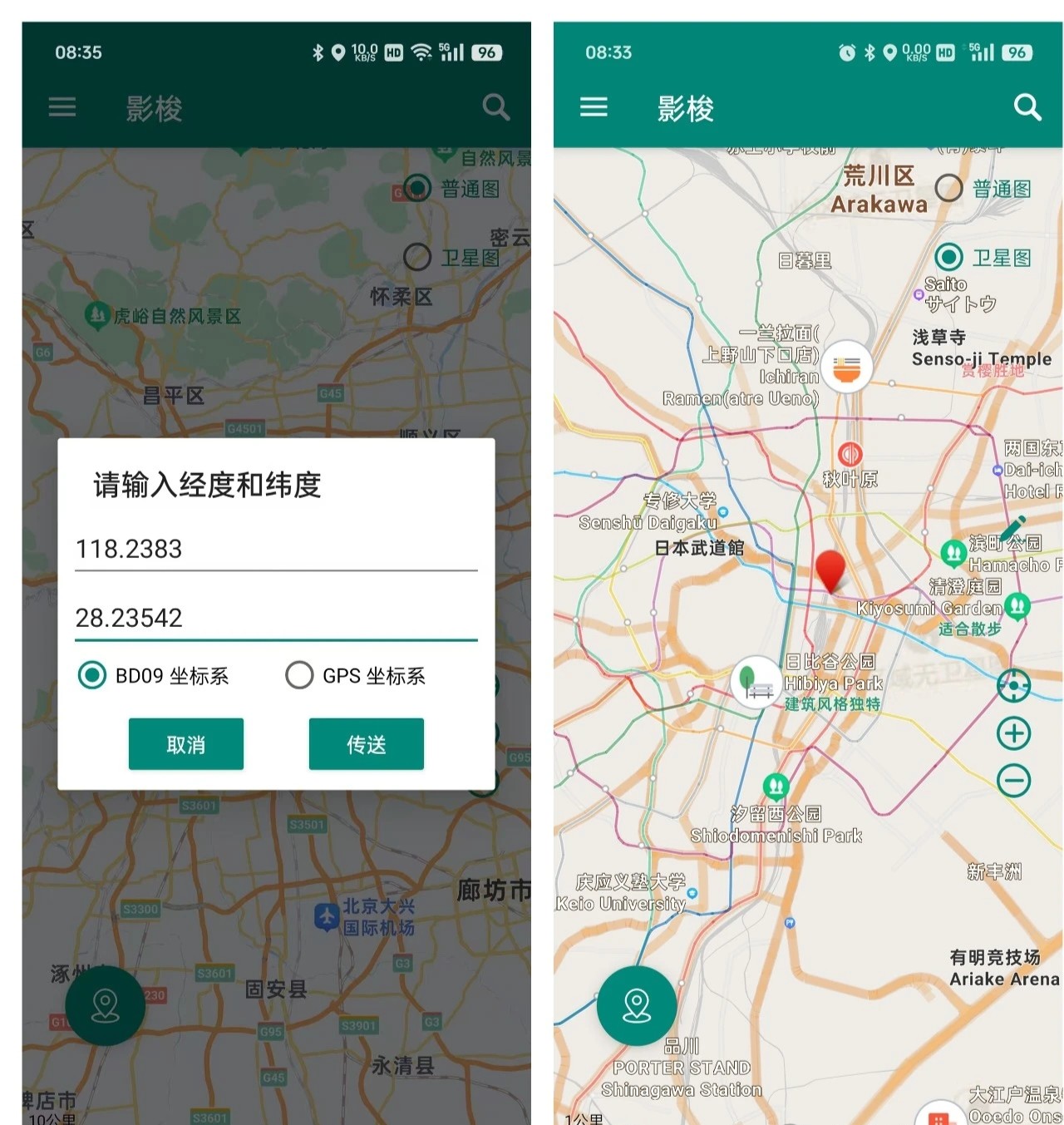 经过实际测试,影梭的定位效果非常精准。例如,将定位修改到北京大兴机场时,与百度地图进行实时对比,定位结果十分准确。同样,修改到日本东京或腾讯总部等位置时,也能实现精准定位,并且运行稳定。
