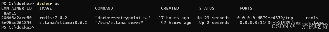 确保docker部署的redis和ollama服务都正常运行,通过 docker ps查看