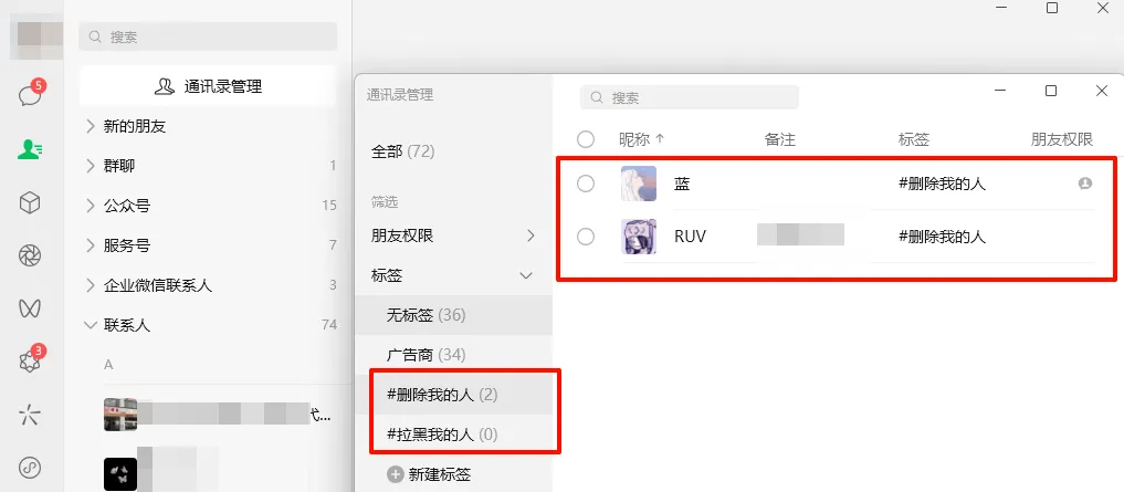 进入微信电脑版→通讯录管理→标签,即可清晰看到: